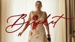 A blood-soaked bride struggles to dispose of her fiancé's dead body while instructing her lover on a recipe for dinner that evening.